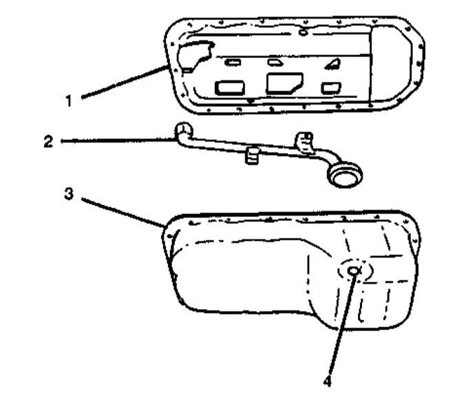 Детали установки поддона картера (3), маслозаборника (2) и маслоотражателя (1), - не забудьте проверить состояние сливной пробки (4).